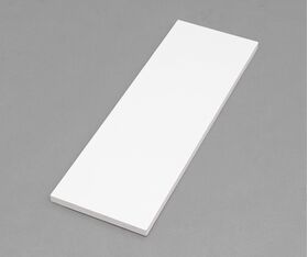 ●軽量なランバーコア構造の化粧棚板です。インテリアに合わせやすい明るめのカラーを採用しており、奥行きは350mmで幅が600mm、900mm、1200mm、1800mmの4サイズを品揃えしました。同一体積当たりの重さがDIYボードと比較して約3分の2と軽量なので、女性でも作業がしやすくなっています。