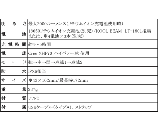 ●明るさ:2000ルーメンス(最大)