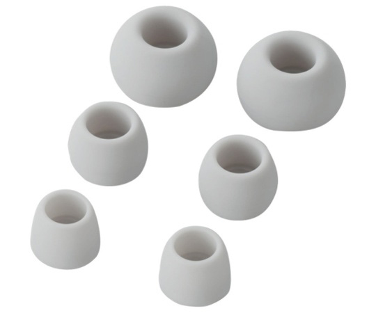 ●フィット感が選べるようにイヤーキャップが付属。一般的なS・M・Lサイズに、さらに小さなXSサイズを加えた4サイズが付属しています。