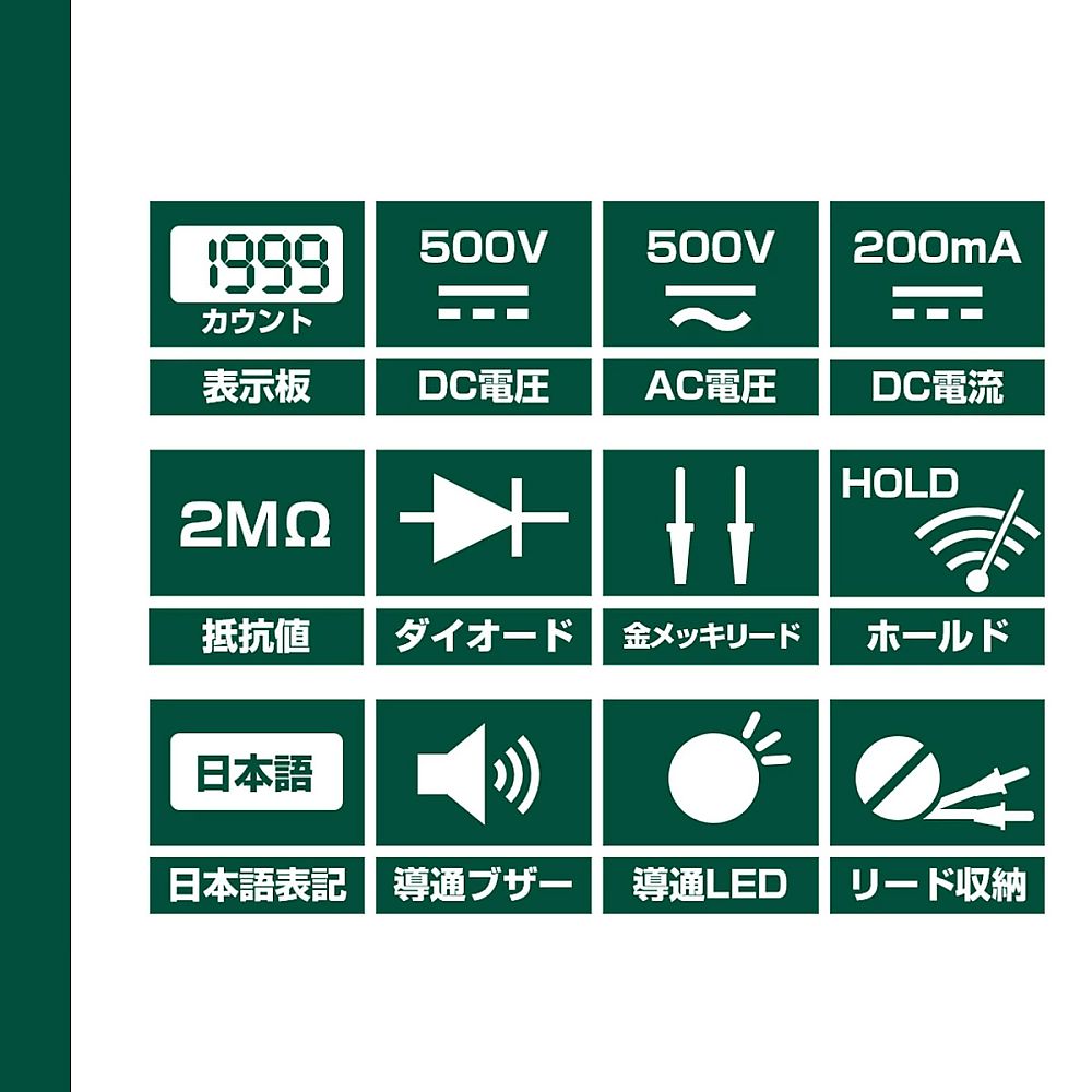 ●導通ブザーとダイオードテストも可能。