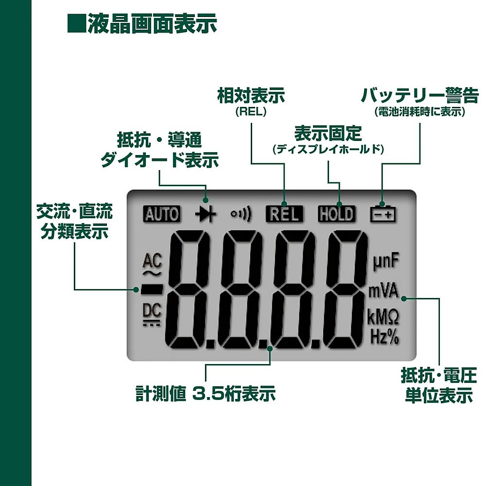●導通ブザーとダイオードテストも可能。