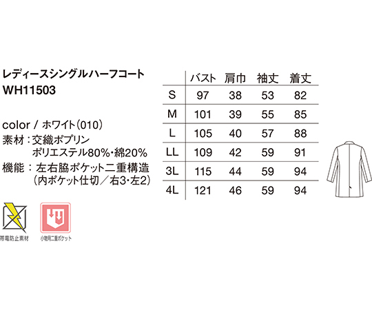 レディースハーフコート ホワイト M WH11503