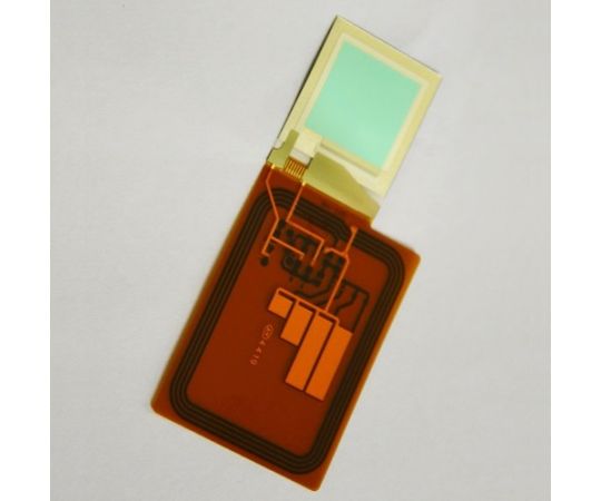 ●フレキシブル有機EL照明は、プラスチック上に形成することで、薄くて軽く、曲げやすいという特長をもっています。発光面積は約15mm×15mmで広くはありませんが、光るプレートやポップ広告、印刷物などに活用することができます。厚さは約0.3mmの薄いシートで、面全体を均一に光らせることができます。面で光るため、発熱も分散し放熱が容易になります。発光色は赤で、NFC(近距離無線通信)付きです。スマートフォンやリーダライタを使ってフレキシブル有機EL照明を発光させることができます。
