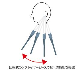 ●回転イヤピースや可動式耳管など、耳にやさしい耳回り構造。