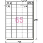 エーワン ラベルシール[プリンタ兼用] 下地がかくせて透かしても読めない修正タイプ マット紙ホワイト A4 65面 21.2×38.1mm 四辺余白付 31673 1冊(12シート)
