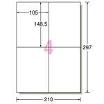 エーワン ラベルシール[プリンタ兼用] 下地がかくせて透かしても読めない修正タイプ マット紙・ホワイト A4 4面 105×148.5mm 31661 1冊(12シート)