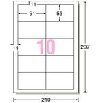 エーワン ラベルシール[プリンタ兼用] マット紙・ホワイト A4 10面 91×55mm 四辺余白付 31513 1冊(10シート)