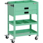 TRUSCO ツールワゴン ラビットワゴン 700X450XH880 3段 1段引出付 仕切板2段付 ハンドル付 ゴム車輪 ヤンググリーン