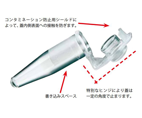 ●▼ヒンジの付いた蓋には、コンタミネーション防止用シールドが付いています。
