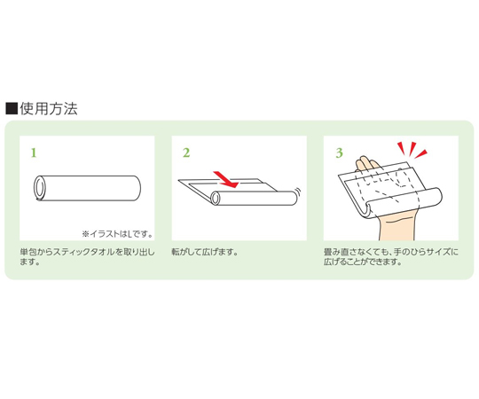 ●水分をたっぷり含んだ厚手シートを、たたみ直すことなく手のひらサイズに広げることができるため、温かいまま広範囲を拭くことができます。