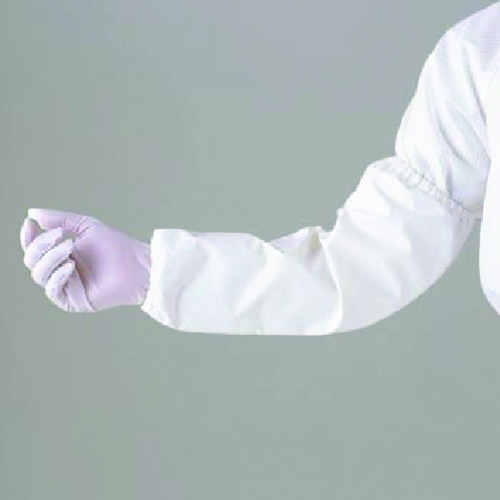 ●防塵服素材の表面にフッ化エチレン樹脂多孔質膜(白色)をコーティングした素材「耐薬プリータ」を使用した腕カバーです。