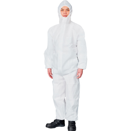 ●通気性に優れた単層不織布の保護服です。比較的荒い粉塵の扱い、清掃等の軽度な汚れ作業に最適です。●便利なポケット付きです。●フード、袖口、裾部分はゴム入りで異物の侵入を防ぎます。●処分しやすいプラスチック製ファスナーを採用しています。