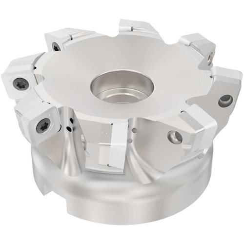 ●汎用用途向けのハイフィードカッタ、4コーナー切れ刃、片面インサートです。