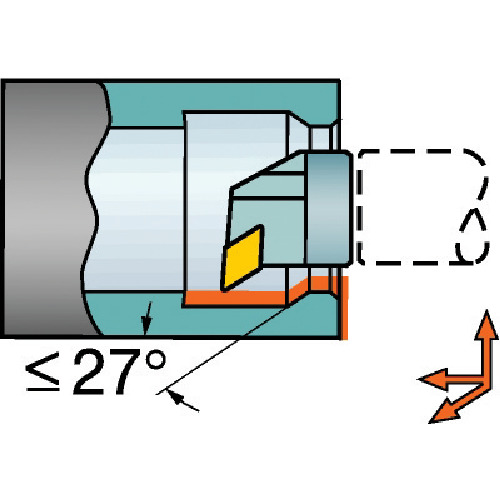 ●内径荒削りおよび仕上げ用ヘッド交換式旋削工具、チップはネガでセンター穴のため素早く正確な割り出しができます。