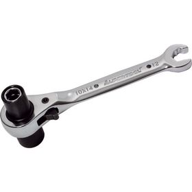 ●正逆は切り替え爪式です。●1丁で5サイズのボルト・ナットの締め付けが可能です。●配管バンド、各種ラックの締め付けに最適です。●安全ロープ取り付け穴を2ヵ所設けています。●スパナ部(12mm)もラチェット機構です。