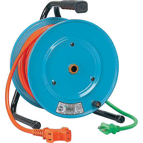 ●ドラム本体は電源のそばに置き、コンセントが付いている先端を目的場所まで伸ばして使用します。(逆配電型)●高所・狭所作業に最適です。
