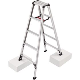 ●最大約21cmのまで脚部伸縮ができます。●開き止めがワンタッチバーになっており片手で折りたためます。●工具などを置ける便利な天板トレー形式●脚部伸縮式で凸凹に対応●別途自在端具が装着可能