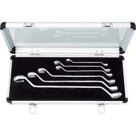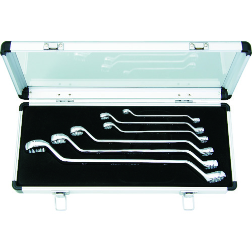 ●柄部の曲がり角度が45°タイプのロングめがねレンチです。●鏡面仕上の高級仕様、フィット感抜群です。●使用頻度の高いボルトサイズを11サイズ使用できます。