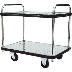●ハンドル、銘板、荷台部分にSUS304を使用したサビに強い台車です。●独自の車体構造で、縦方向の梁・横方向の絞りで強度・耐久性に優れています。