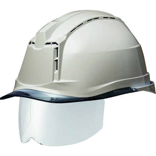 ●安全性・快適性を追求したハイスペックモデルです。●優れた通気性能で、熱中対策に貢献します。(当社従来品に比べ、約3度のヘルメット内部温度の低減が可能)●帽体と内装の重量最適化を図り、軽量かつ強度の両立を実現しました。(当社従来品比-30g)●ワンタッチで内装の簡易着脱が可能です。●後頭部から雨水を逃がす、新形状のレインガードが付いています。●角のないスムース設計の新型RAバンドで、後頭部にフィットし、被り心地が更に向上しました。●収納可能な業界最大幅のワイドシールド面で、側面からの飛来物からも眼を守ります。(当社従来品比+63mm)●ワンタッチで簡単にシールド面の交換が可能です。●光の歪み、屈曲を最小限に抑えたワイドシールド面です。