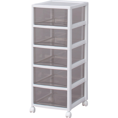 ●引き出しの材質にスチロールを採用しているため透明度が高く、中身が確認しやすいクリアタイプのチェストです。●引き出しは飛び出しにくい、簡易ロック構造です。●移動に便利なキャスター付です