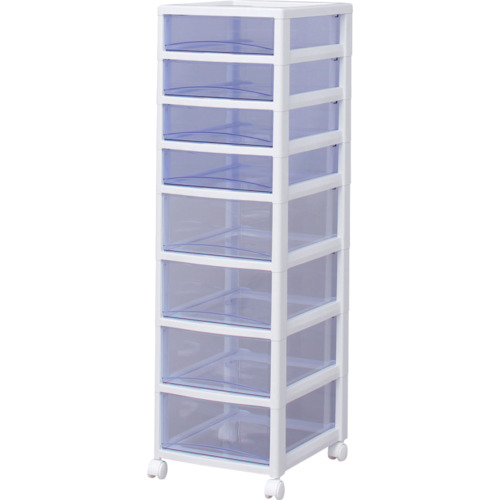 ●引き出しの材質にスチロールを採用しているため透明度が高く、中身が確認しやすいクリアタイプのチェストです。●引き出しは飛び出しにくい、簡易ロック構造です。●移動に便利なキャスター付です