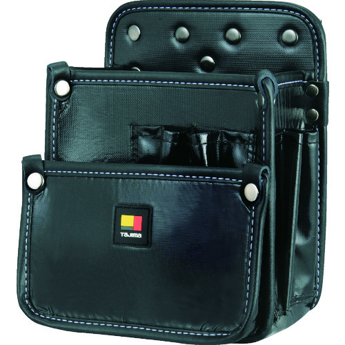 ●腰周りの組み換えが簡単な着脱式です。●ペンチ、ニッパー、全ネジ回しや検電器など多様な工具が収納可能です。●ケーブルラックのジョイントなどかさばる資材も収納できる大口ポケットです。●挟所に入る場合でも腰袋を片手で潰しやすい形状です。●PVCフィルムでコーティングした高密度ナイロン生地でEVAフォーム材をサンドイッチした5層構造のタジマオリジナル生地を採用しました。●ベルトからの浮きを防止するサイドクリップ装備です。●狭所に入る場合でも片手で潰しやすい形状です。