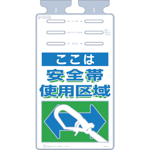 ●環境にやさしいポリエチレン素材を使用しています。●透明生地の使用により、裏側からも視認できます。●ロープ・バリケード・単管パイプの3種類に取付可能です。