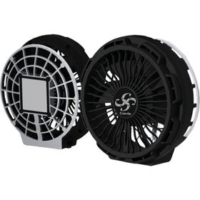●冷却プレート一体型空調ファンです。強風連続使用時間約4時間のバッテリー容量です。バッテリー、充電器が標準セット内容になります。