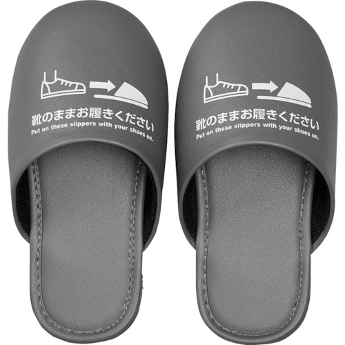 ●靴を履いたまま使用できるよう大きめに設計されているスリッパです。●靴底を通じて広がる恐れのある「床の汚れ」や「菌」を持ち込まないようにする為にご使用頂けます。●安全靴や登山靴、ギプスなど、着脱が困難な場面での使用も便利です。●表地には抗菌仕様のPVCを使用している為、衛生的にご使用頂けます。●「JIS L1902:2015」に準拠した試験で「黄色ブドウ球菌」の増殖を抑える効果が確認された素材(PVC)を使用しています。●底面にはゴム付EVA素材を使用し、滑りにくい構造です。●お手洗いの床など、水気がありつるつる滑りやすい場合でも、転倒のリスクを軽減します。●スリッパの甲がつぶれにくく、ラウンド形状を保ちやすくなっているので履きやすいです。●イラスト・日本語・英語で使い方の案内を印刷済みです。●S、M、Lの選べる3サイズご用意がございます。