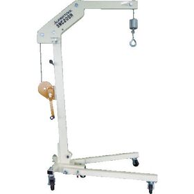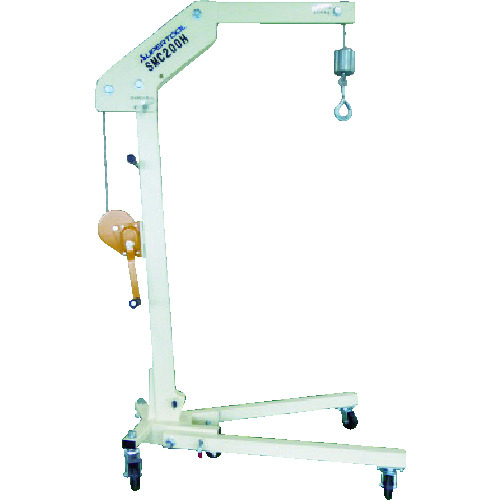 ●荷を吊り上げたまま移動が可能です。●移動は4輪共自在車輪でスムーズに行えます。●手動ウインチにて荷物の吊り上げ、下げができます。●アーム・足は折りたたみ式なので、コンパクトになり、いつでもどこでも使用できます。