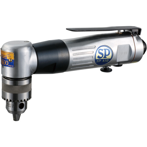 ●狭い場所に最適なアングルヘッドタイプです。●同性能の電気ドリルに比べ、軽いミニサイズです。●センター出しが容易なレバーアクションです。●後方排気ですから、作業を妨げません。