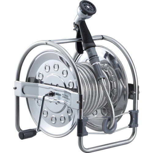 ● LN-3型レバーノズル採用しています。水の出方を用途に合わせた7パターンから選んで使えます。●コロコロガイドが左右に転がり、ホースに 手をそえずに巻取り可能です。 簡単な構造で機械的なトラブルの心配がなく、万一ホースが重なる場合もガイドローラーを軽く動かすことで巻乱れを解消します。●ノズルをスッキリ収納できます。●一次側ホースは塩ビホース(1m)となっています。●ねじれグセがなく、滑らかな巻き取り・引き出し。蛇腹構造で伸縮するので、スルスルとしなやかに巻けます。●錆びにくく、ベタつかない。泥などの汚れも、水で流せばスッキリ綺麗になります。●折れ・潰れによる水量変化がない。ホース内を水が流れる音がハッキリ聞こえます。●コーナーや車のタイヤで引っかからない。離れた場所でも扱いが楽々。●穴あきがない優れた耐久性。全長がステンレスで覆われているので内部ホースを保護。