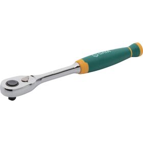 ●ギア歯数72枚・送り角度5°により、細かな送り操作ができます。●クイックリリース機能により、ボタンを押すと取り付けられたツールは簡単に外れます。●表面のポリッシュ仕上げにより汚れをふき取りやすいです。●通常より厚みを抑えたデザイン・細かな送り角度により、 手の届きにくい狭い作業環境での作業に最適です。●レバーで簡単に回転方向を切り替えられます。●クロバナジウム鋼製で優れた強度と耐久性を実現します。●ASME B107.110 適合品です。