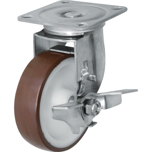 ●芯金・旋回部・ベアリングにはステンレス(SUS304)を使用しています。●自在旋回部には防塵カバーが付いた滑らかな動きの二層ベアリングを装備しています。