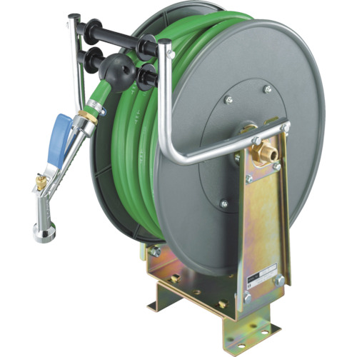 ●樹脂ドラムで軽量かつスムーズな引き出しトルクです。●キリ・ストレートの切替え可能なメタル製散水ノズル付です。●天吊り・壁付け・床置きの3通りの設置が可能で、使用後は自動巻取りで速やかに収納できます。