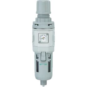 ●エアフィルターとレギュレーターをコンパクトに一体化しました。●空気中のドレン・ダストを除去し、圧力を調整します。●使用するエレメントは、表面が粗く、内部に行く程細かくなるという、独自の化学繊維構造を採用しています。 目詰まりを大幅に解消し、エレメント寿命が大幅UPします。