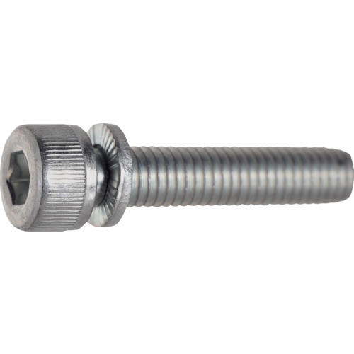 ●ボルトと座金がラチェット方式で結合されているため振動に対しても対抗力があること、また、付属の座金の裏面(被締め付け側)に突起があるため被締め付物に食い込み、高い緩み止め効果を発揮します。