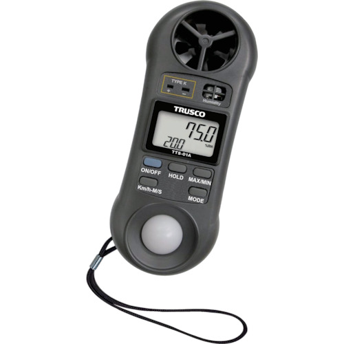 ●照度・風速・温度・湿度の測定が1台で可能です。●小型・軽量タイプです。●携帯に便利なストラップ付きです。●本体内蔵の温度センサー以外にも、K熱電対センサーを取り付けての温度測定も可能です。●電池残量が少なくなると液晶上にイラスト表示でお知らせするローバッテリー機能を搭載しております。●測定値を固定するデータホールド機能を搭載しております。●測定値の最大値/最小値を表示するMAX/MIN値表示機能を搭載しております。●無操作時間約10分で電源がオフになるオートパワーオフ機能を搭載しております。