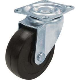 ●走行性、耐荷重性を備えた標準的な軽・中量荷重用キャスターです。運搬台車やロールボックスパレット、その他一般作業用に数多く使用されている標準寸法のキャスターです。(キャスター径50~75mm交換車輪無し)●自在旋回部はダブルベアリングを採用しています。