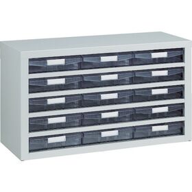 ●引き出しは透明タイプで中身が見えて仕分けに便利です。●本体は引き出しの飛び出し防止機能付です。●横型タイプの部品管理ケースです。●奥行が307mmなので、作業台に置いて使用しても、作業面が広く取れます。