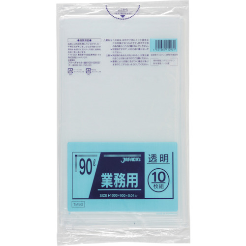 ジャパックス メタロセン配合ポリ袋 90L 透明 10枚 厚み0.040mm