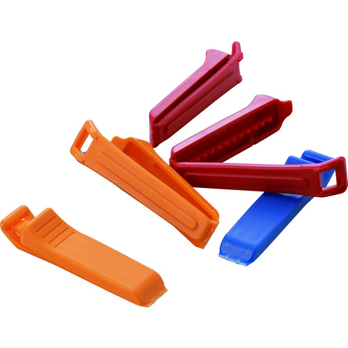 ●ワンタッチで開閉できます。●黄色2個、赤2個、青1個の5個セットです。●ポリ袋の口とじに最適です。