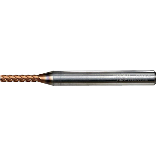 ●一般鋼から高硬度材・難削材まで対応可能なTiSiNコーティングを採用しました。●30°ネジレのエンドミルに比べ高速可能が可能な45°ネジレです。
