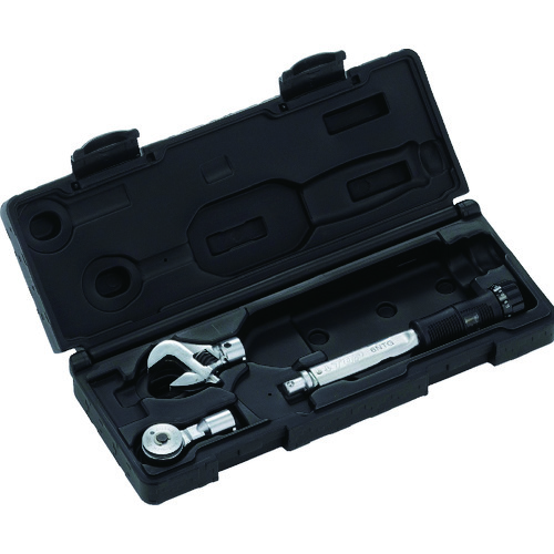 ●モンキ形・ラチェット形トルクヘッドで用途に合わせて使い分けられるセットです。●ボルトナットに合った締め付けトルク値にその都度、調整可能なプリセット形です。●作業の熟練度を問わず一定のトルク値が得られます。●自動車、バイク、機械、器具等のトルク規制のある個所のボルト・ナットの締付や、エアコンクーラー等の配管の締付など、あらゆる分野の作業に最適です。●予め設定したトルク値に達すると「カチッ」という音、または手に軽いショックでお知らせします。●手にフィットする樹脂グリップタイプで、握りやすく、力が掛けやすくなりました。●また主目盛の数字が見やすく、透明なフタでカバーされていて異物が入りにくくなりました。●ヘッドとハンドルが分離でき、反転しての取付が可能で、振り幅30°と小さい為、限られたスペースでもスパナのような取り廻しができます。