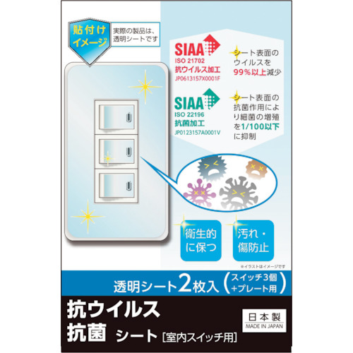●SIAA認証の抗菌ウイルス、抗菌加工で衛生的に使用できます。●スイッチに合わせたカット加工済みで、余分なくきれいに貼り付けできます。●シート表面の特定ウイルスを99%以上減少させます。●シート表面の特定細菌の増殖を1/100以下に抑制します。