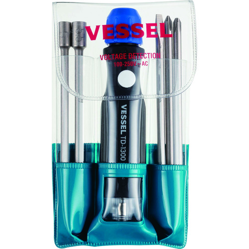 ●低圧用検電ドライバーのセットです。●一般家庭や工場における電気製品の電源の通電チェックができます。●ハンドル内部のネオンが光って通電を確認できます。●差替えが簡単なチャック式ハンドルで、よく使用されるナットサイズ(H5、H5.5mm)をセットしました。●携帯・収納に便利なビニールケース入りです。