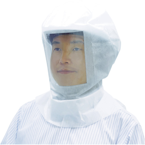 ●前面には防曇フィルムを使用し、曇りにくくなっています。●頭巾内側についてるゴム紐にて頭に固定する事ができます。●ヘルメットの上から被る事ができるので、軽度の粉じんなどを防ぐ事ができます。