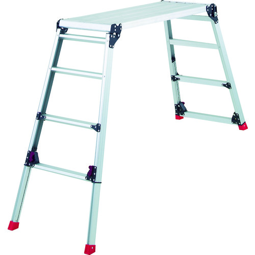 ●四脚共に支柱が調整でき、フラットな足場が確保できます。(最大段差約31cm)●伸縮レバーにダブルロック機構を採用し、安全に作業できます。●天板幅400mmで、広く安定感があり、作業性に優れています。