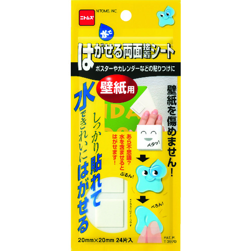 ●壁紙にしっかり貼れて、壁紙を傷めない水溶性両面テープです。●水を含ませるとゼリー状になり、壁紙を傷めず簡単にはがせます